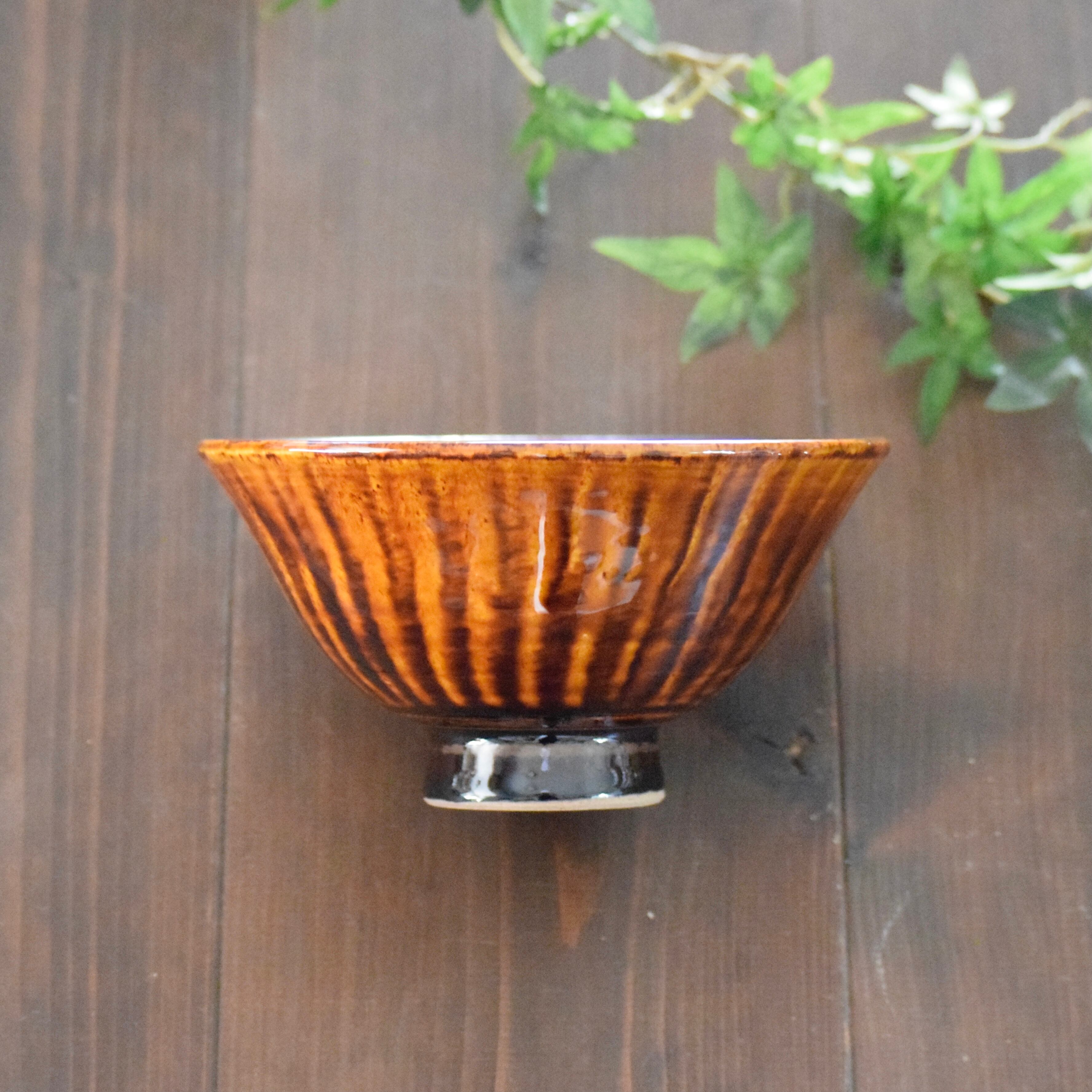 <茶づけ碗> 伝統の刷毛目柄|人気の飴色釉薬